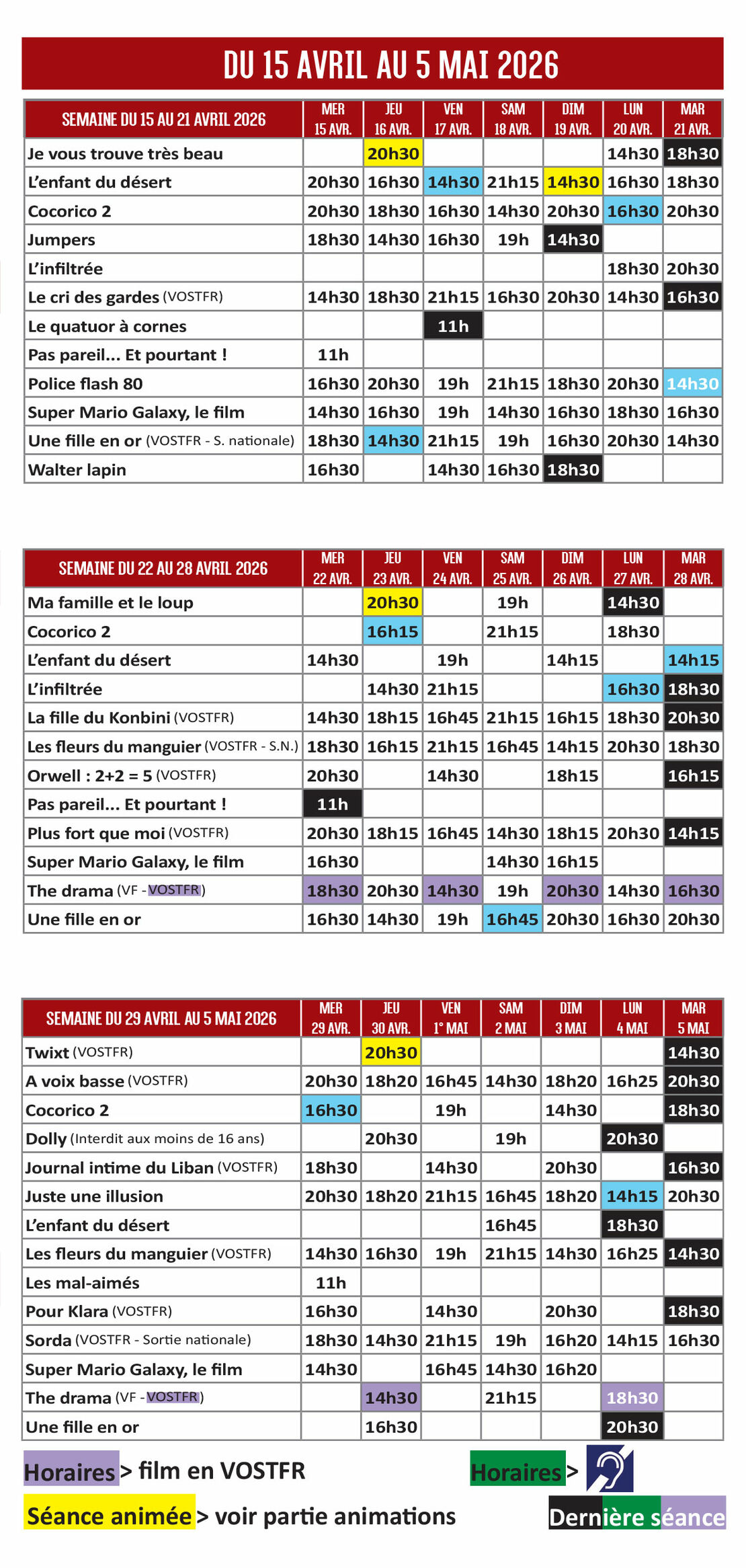 15 avril 2026 - 05 mai 2026