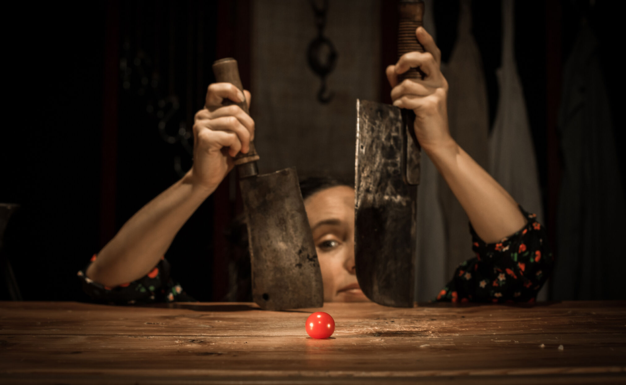 Une fille de boucher, à l’humour bien tranché, nous livre les morceaux les plus intenses de son histoire cabossée. Amarrée à sa boucherie familiale, cette femme fait jaillir les non-dits, les désirs enfouis, à grands coups de couteaux bien aiguisés. Sa manière sin- gulière de résister ravive le goût de l’audace et de la liberté ! Derrière la poésie clownesque et la force symbolique de l’objet, l’universel et l’intime s’entrelacent…